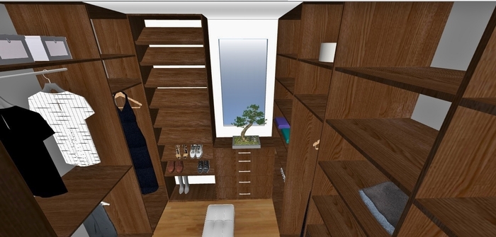 Het voordeel van een raam in een inloopkast is verder, dat de ruimte kan worden geventileerd en de kleding fris blijft.