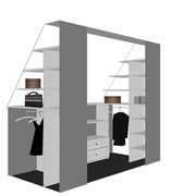 Het is geen probleem de kastindelingen van uw inloopkast aan te passen aan de schuinte, aangezien alles op maat wordt gemaakt. Zie ook