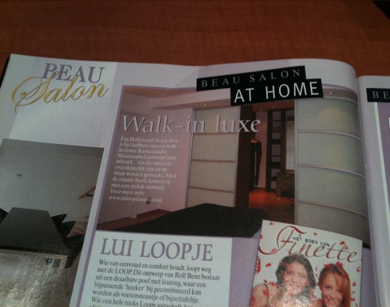 In het glossy tijdschift Beau Monde is ook een artikel geschreven over de inloopkasten van Kastenstudio Maatmeubel: